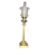 A Victorian 19th century gilt brass oil lamp light. The converted lamp having a neoclassical column with a clear glass reservoir and frosted acid-etched shade atop. All being raised on a square base. Sold as untested.