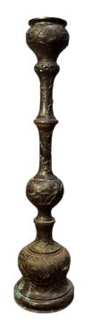 A 19th century Japanese bronze floor incense bruner of baluster form. The lamp is decorated with dragons around the stem with raised on a bulbous base.