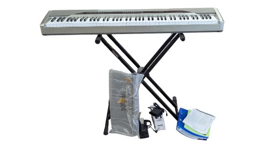 Casio - A contemporary Privia digital piano. Model PX-110 DK with full sized keys, digital effects, reverb chorus, record, two pedals, instruction manual with folding of music with stand. Sold as untested.