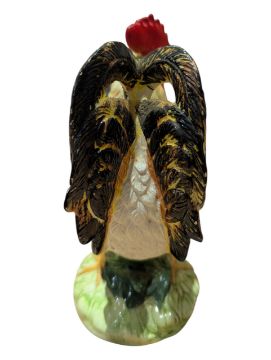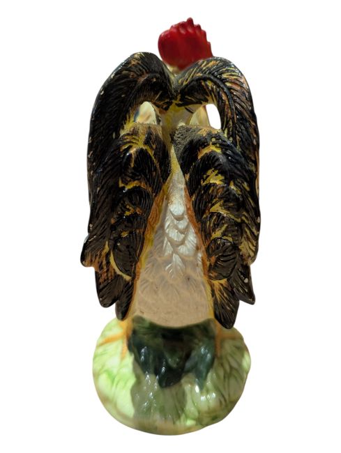 18th century pottery cockerel figure. Depicted standing on a naturalistic base and hand painted. Unmarked. Measuring approx. 16.5cm x 10cm x 7.5cm.