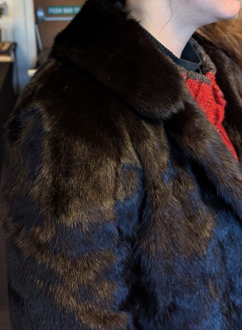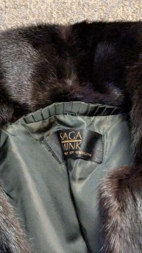Saga Mink - A Saga Mink real fur jacket coat. The coat having Mandarim collar and pelted back. The lining has come unthreaded at the right side, no tears. No visible loss to furr. Size 10.