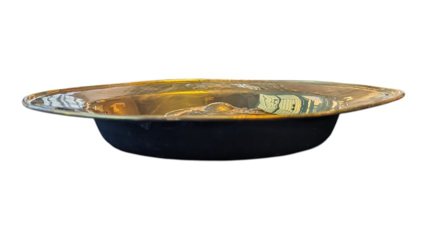 A late 17th century Nuremberg brass alms dish charger. The charger having repousse gadrooned central boss surrounded by wrythen twist. Measuring approx 40cm in diameter.