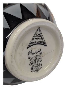 Plant & Tinsley Production - Moorland, Staffordshire - A vintage 20th century studio art pottery vase. Chelsea works Burslem. Bulbous form with flared top in a black and white striped design.