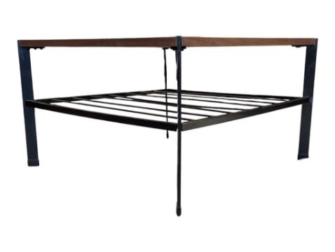 Manner of Ladderax - A retro mid 20th century teak 'Ladderax' style occasional table. Teak square top with shaped metal ebonised legs united by magazine rack undertier.
