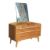 E. Gomme for G-Plan Furniture - A mid 20th century Brandon range light oak dressing table chest. The chest having a rounded rectangular mirror over top with drop centre flanked by two drawers. The base with two short and one long drawer, splayed tapering legs. Drawers with wooden pull handles.