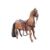 A vintage 20th century hardwood decorative horse. In a standing position with reins and a saddle with a faux hair black tail.