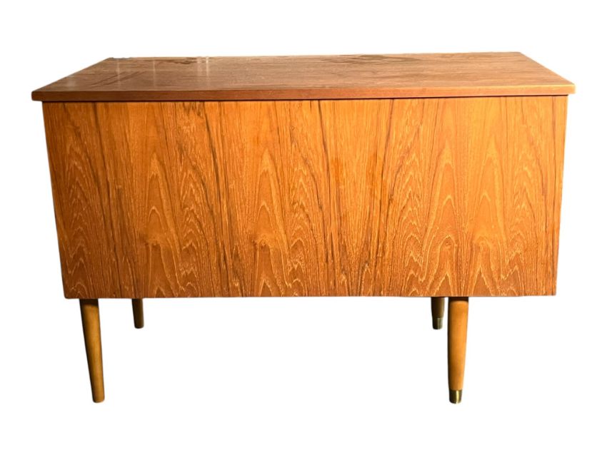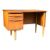 British Modern Design - A mid century teak wood kneehole desk. The pedestal of drawers having open kneehole with desk top above. Measures approx: 75x107x61cm