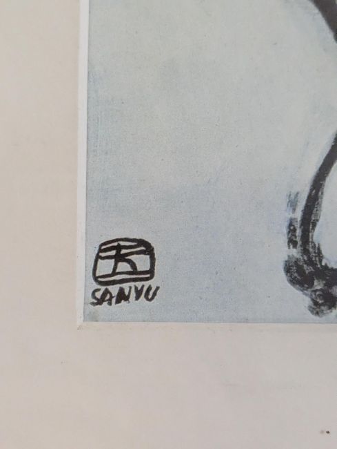 After Sanyu (Chinese, 1895 -1966) - A vintage 20th century print of a nude female. Titled ' Agnes ' mid 20th century circa 1960s printed signature bottom left. Framed and glazed. Measures approx: 60x117cm