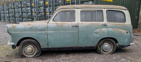 UMR 384 - A 1959 Standard Companion estate, in green. First registered in September 1959. 948cc petrol, 55,000 miles. Offered from the estate of a long-term Standard enthusiast, this example of the extremely rare Standard Companion estate was last taxed in 1982 and has, we believe, been off the road and garage-stored since then. The car appears to be complete. While the interior remains well-preserved, there is rust present throughout the bodywork, and thus the car is sold as a project for restoration or spares. We have not tried to start the car but it appears to be mechanically complete. No documentation for this vehicle, but the registration is still recognised on the DVLA system.
