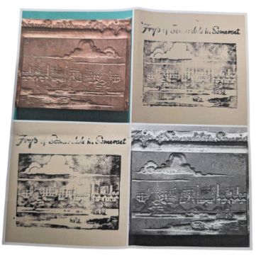 Local Bristol Interest - an early 20th century 1920s / 30s 'Frys of Somerdale In Somerset' original advertising printing block. Features the Fry's factory and notations above. Mounted upon a wooden block.