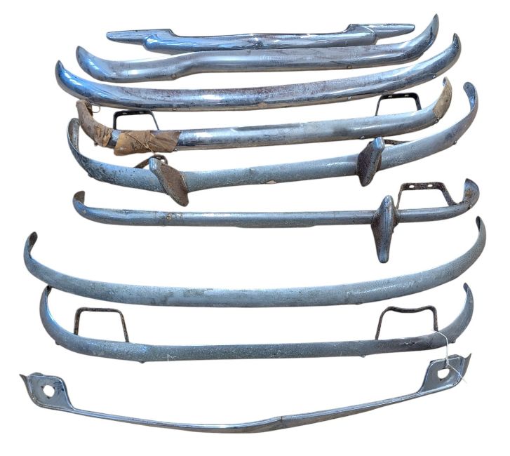 A variety of chrome bumpers and trim items, believed to suit a Standard car of the late 1950s.