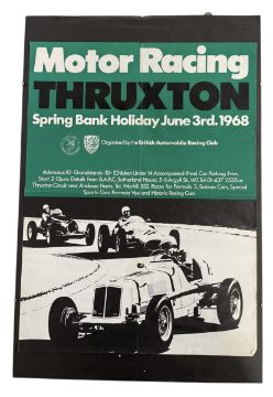 Automobilia - a vintage 20th century 1960s Motor Racing poster for Thruxton Spring Bank Holiday, June 3rd 1968. With pictorial imagery to the lower half. In folded condition.