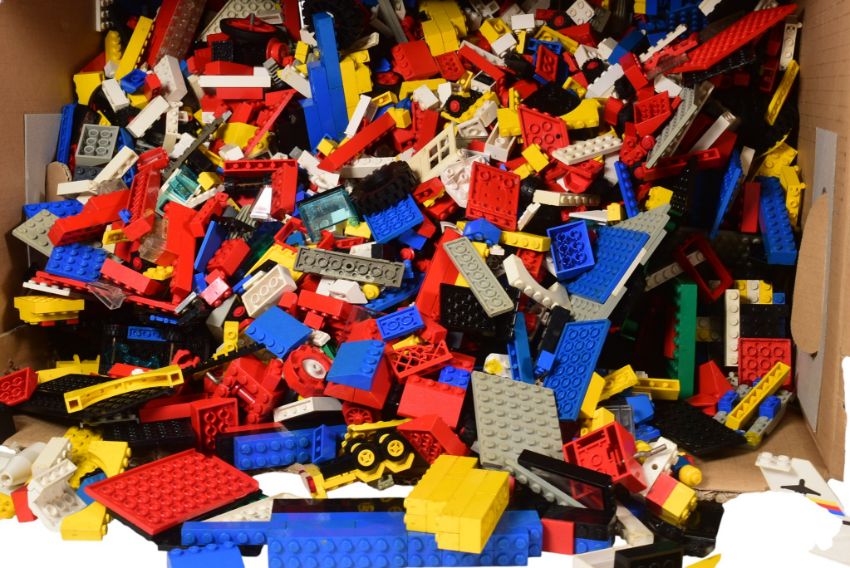 Lego - a collection of vintage Lego bricks, base plates and other loose pieces. All genuine Lego, largely of System and Technic interest.