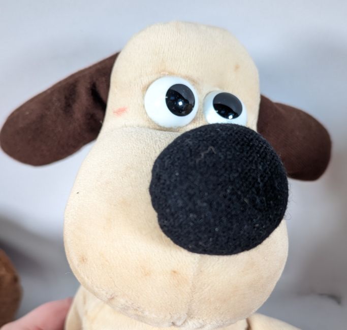 Bears - a collection of 6x vintage soft toy plush teddies, to include; 2x Snoopy toys, BT tv advertising Buzby bird by Burbank Toys, a windup clockwork mechanical music box koala, a Wallace & Gromit Boots Gromit toy, and an unmarked monkey with zip bag interior.