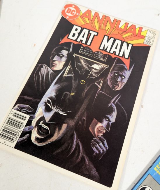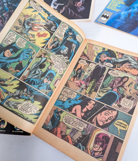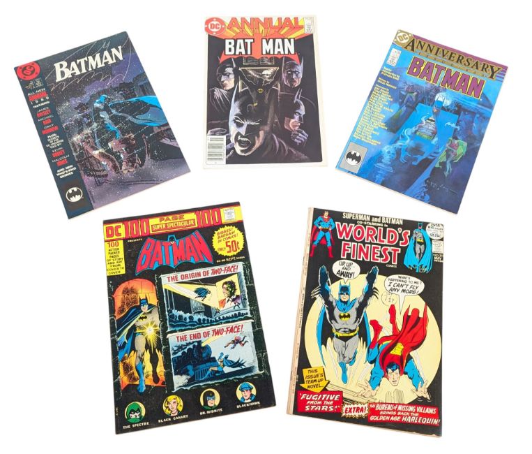 Comics - a collection of x5 vintage DC Batman comics books and annuals to include; 1972 Superman & Batman Co-starring in Worlds Finest #211, 100 Page Spectacular 1973 #20, Anniversary Issue 1986 #400, Batman Annual 1985 #9 and All New Annual 1989 #13.