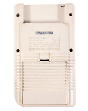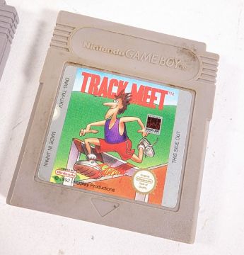 Retro gaming - a 1989 Nintendo game boy model no. DMG-01, together with three games; 'Super Mario Land', 'Super Mario Land 6 Golden Coins' and 'Track Meet'. Battery compartment appears un-rusted, but untested.