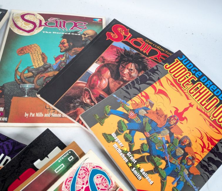 A collection of vintage graphic novels / comics to include; Fleetway Slaine The Horned God volume 2 and 3, DC Lobo's Greatest Hits, Maus Art Spigelman volume 1 and 2, Stephen King Cycle of The Werewolf, Titan Books, ABC Warriors The Black Hole, Titan Books Judge Dredd and others.