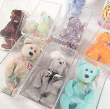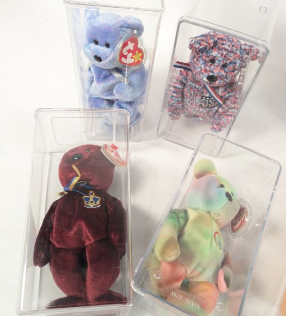 Beanie Babies - a collection of 14x TY Beanie babies housed in plastic cases, to include 2002 Queen's Jubilee, Clubby IV, Brittania, and other. All with original swing tags.
