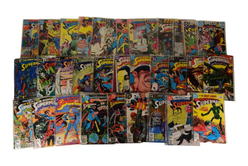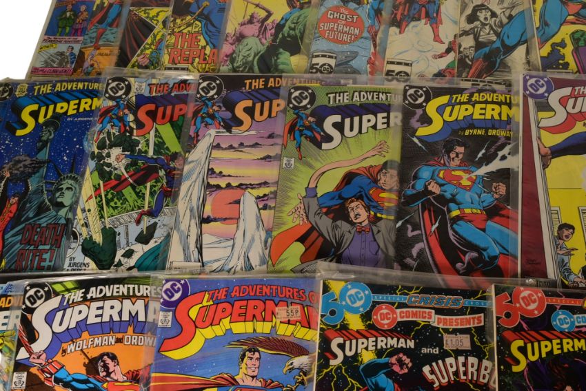 Comic Books - DC Universe - a collection of vintage 1980s Superman comics comprising; #407, #411-414, #416-419, #423, Superman & Superboy Crisis Crossover #85-86, Superman 1987 #1-4, The Adventures of Superman #424-427, #432, #436-440, #458-459, #461, #465 and 1987 annual #1, 1991 annual #3, Special Superman 1983 #1 and Special Superman 1985 #3