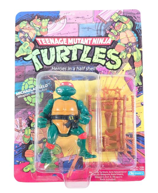 Teenage Mutant Ninja Turtles - an original retro Playmates carded 'Michaelangelo' action figure, un-punched and factory sealed with contents un-used.