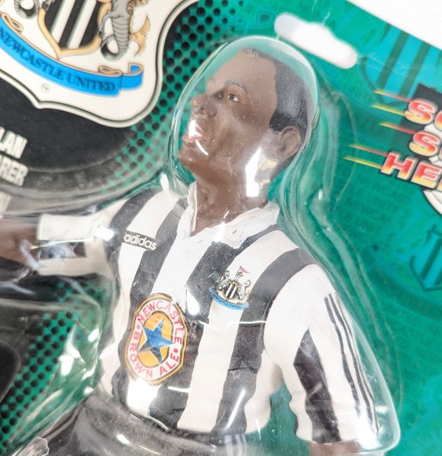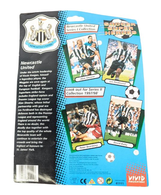 Vivid Imaginations - a vintage 1990s (1996) 'Soccer Super Heroes' Newcastle United's miscard error action figure. Les Ferdinand figure on an Alan Shearer card back.