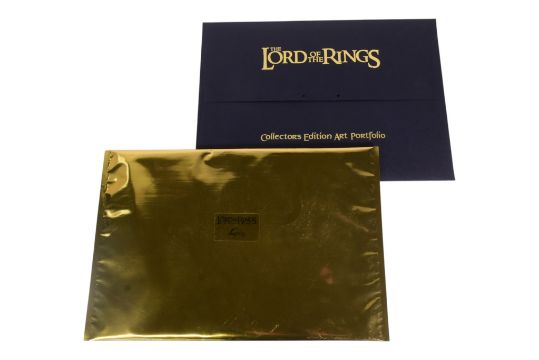 Lord of The Rings - a collection of assorted LOTR toys and memorabilia to include; Collectors Edition Art Portfolio containing x10 A3 prints, NECA talking Gollum plush, Gimli & Strider bobin head figures, x2 folders and x1 tin of collector trading card, chess set base and more.
