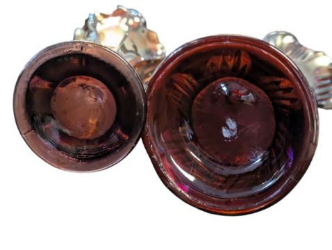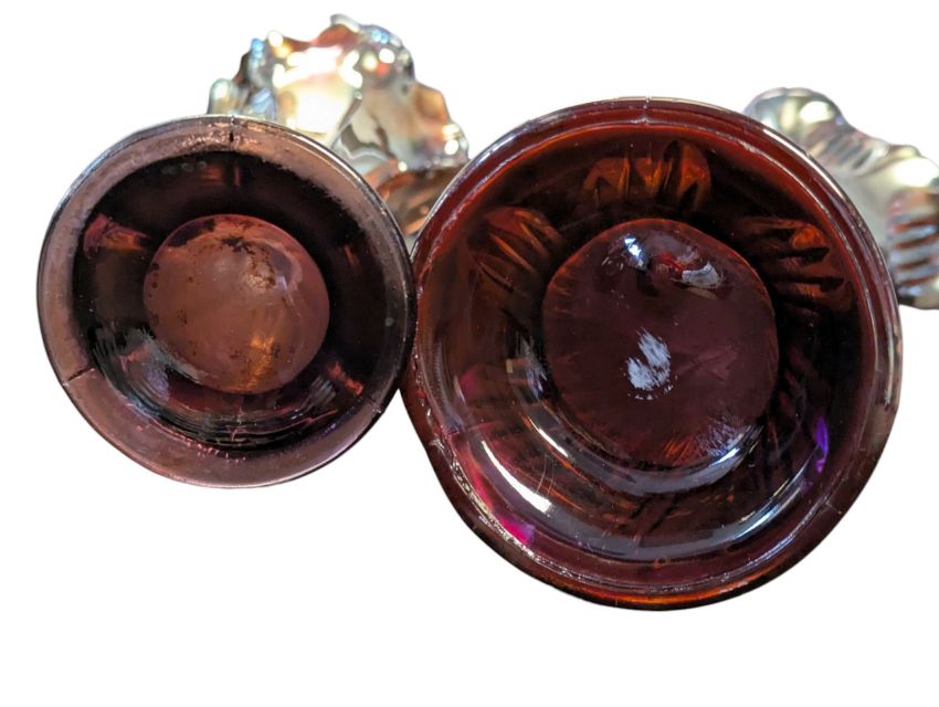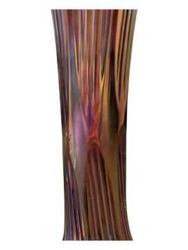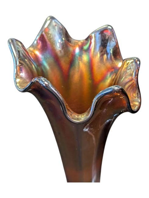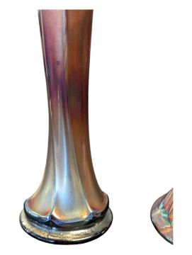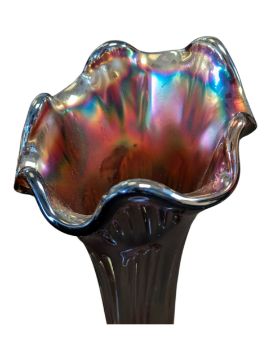 Fenton Art Glass Company - Two vintage 20th century lustre amethyst iridescent vases. Having a scalloped rum, striped tapering body on a circular base.