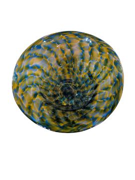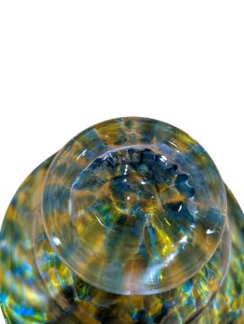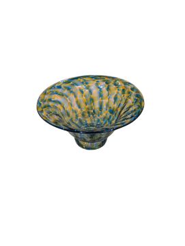 Jane Charles (British 1961-) Studio Glass "Urchin" Bow. Contemporary circa mid 2010s being hand blown with swirled and mottled aqua with pink and faceted body with clear foot.