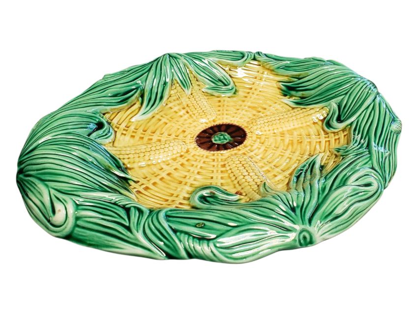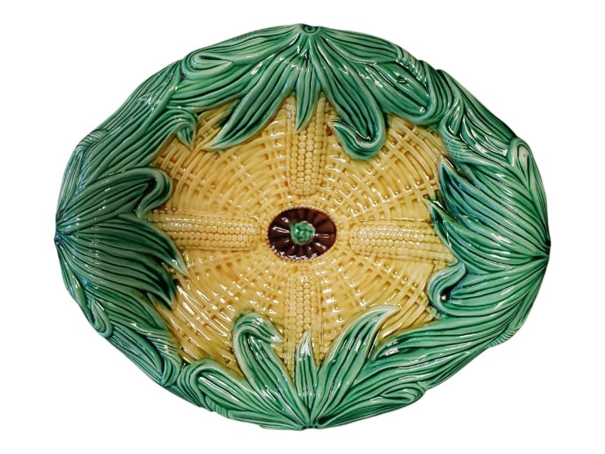Adams and Brinkley - A 19th century Victorian majolica corn pattern plate. The plate of oval form and having a tessellating corn on the cob pattern. 'Z' stamp to the underside. Measuring approx. 4cm x 33.5cm x 27.5cm.