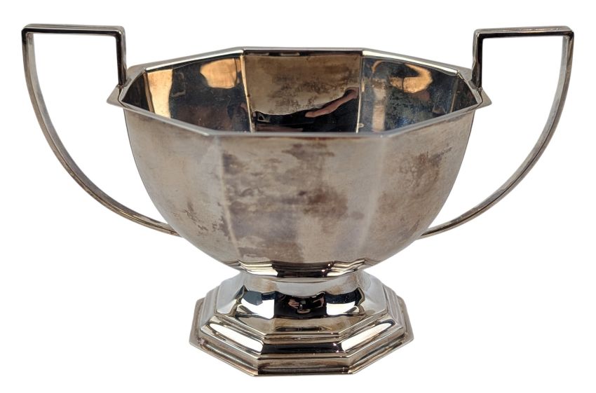 A 20th century Elizabeth II hallmarked silver sugar bowl. Hallmarked year 1966, Birmingham. Sponsors mark for Barker Ellis Silver Co. Completed in Kemp Brothers of Bristol presentation box. Weight approx. 174g.