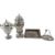 A Victorian hallmarked silver pepperette. Hallmarked year 1839, London. Sponsors mark for John Evans II. Together with a small Edward VII hallmarked silver lidded trophy. Hallmarked year 1908, Birmingham. Sponsors for Thomas Woolley. Engraved 'Liverpool 1909'. Further together with an Elizabeth II hallmarked silver square tray / ashtray. Hallmarked year 1967, Birmingham. Sponsors mark for S J Rose & Son. Along with a hallmarked silver Whisky bottle label. Hallmarked year 1992, Birmingham. Sponsors mark for Henry Bushell & Co. Total weight approx. 150g.