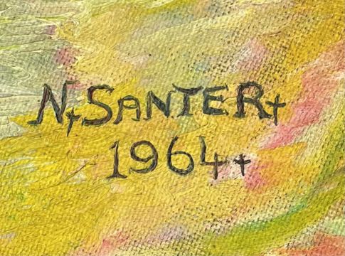 Nancy lived in St Albans then sold her house there and came to live in a housing co-op in Islington, Bristol for a couple of years in the early 80s. Nancy painted mostly for herself (it was therapeutic for her) and gave paintings away and didn't sell them. Sometimes she used pictures in Nat Geographic magazines for inspiration, sometimes they were from her own imagination. She died at the age of 57 from cancer.