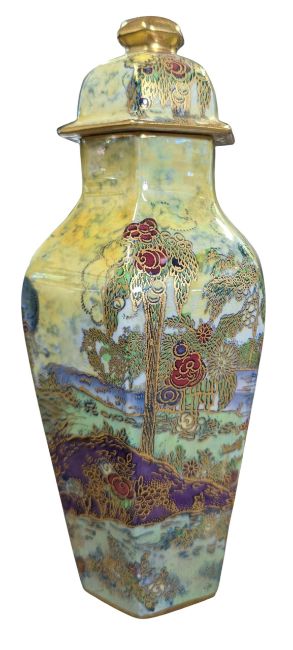 Lidded lustre ware baluster vase in the Chinese taste on yellow ground, number 711820