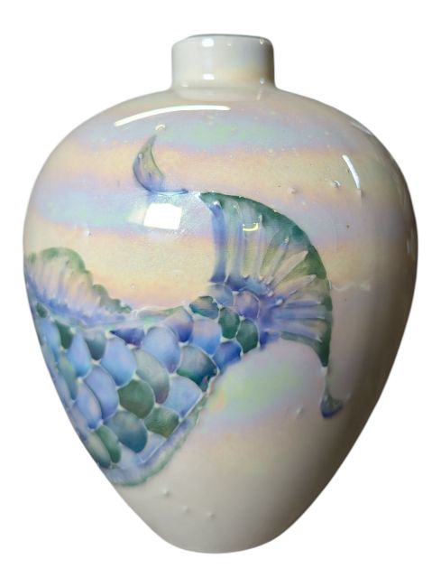 Ginger jar-shaped vase in lustre finish with blue & green fish