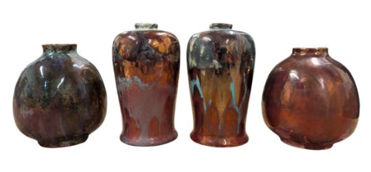 Four lustre ware pottery miniature vases