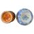 Overall in good condition with general wear commensurate with age. Orange vase with small dent to rim, unclear whether firing fault or damage, the blue vase with chip to rim. Surface scratches on both and some crazing present.