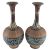 Doulton Lambeth - a pair of mid-century retro stoneware pottery vases. Each vase has a flared mouth with elongated neck and a globular body with green and blue floral and vignette decoration. Embossed initial ZB 9268 to the base.