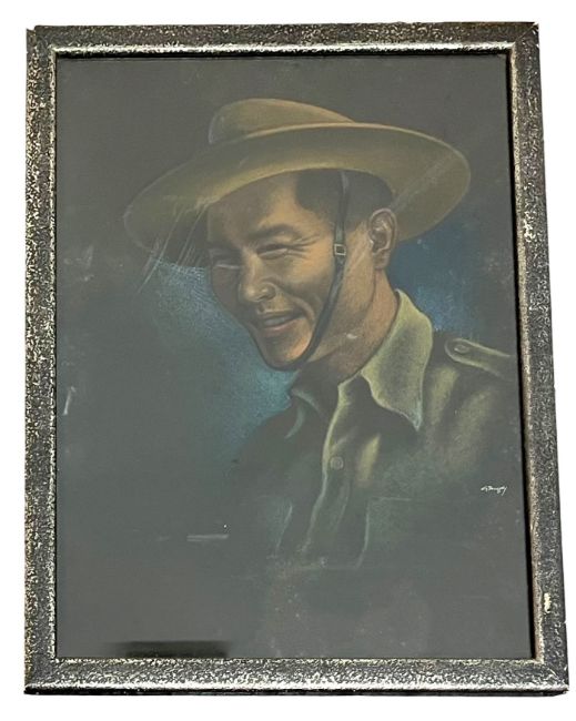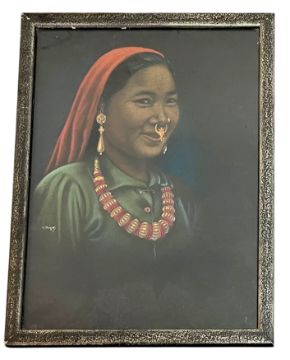 Goray Douglas - a pair of mid-century pastel on paper portraits. To include a portrait of a Nepali woman in traditional dress, together with a portrait of a Gurkha soldier in uniform. Signed. Framed & glazed. Measuring approx. 41cm by 31cm, including frame. With a label to the reverse of The Art and Stationery Company, Fine Art Dealers and Picture Framers, Oxford. (2)