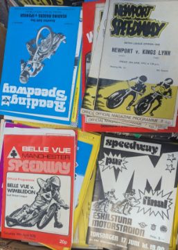 Speedway - a large collection of vintage Speedway racing programmes and bulletins, spanning events from the 1970s up until the 1990s. Teams include; Swindon, Weymouth Wizards, Newport Wasps, Exeter Falcons, Bristol Bulldogs, Coventry, Glasgow Tigers, Sunthorps Stags, and others, together with several Daily Mirror souvenir magazines. Primarily UK teams, but the occasional European team included.
