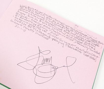 Autograph Albums - four albums of autographs obtained c2000s containing signatures from various entertainers; actors, singers, and performers. Names of note include: Philip Meeks, Jimmy Osmond, Gareth Gates, Eoghan Quigg, and many others. Most signed on single pages, but the occasional back-to-back may be present. Many with pencil annotations noting the signer, some unidentified. Variously filled, most sparsely filled. (4)