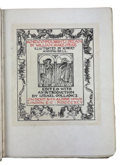 A collection of seventeen books relating to the illustrator, Robert Anning Bell. Comprised of the following titles: A limited edition of A Midsummer Night's Dream, edited and with an intoduction by Isaac Gollancz (1895), no. 16 of 50; Tales from Shakespeare by Charles and Mary Lamb (1899); Palgrave's Golden Treasury (1907); Two stories from J. M. Dent's Banbury Cross Series; Mary the Mother of Jesus by Alice Meynell (1912); and eleven others. Wonderfully illustrated by Anning Bell throughout. (17)
