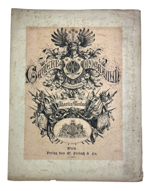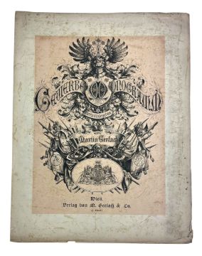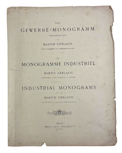 Gerlach, Martin. [1881] Das Gewerbe-Monogramm Herausgegeben von Martin Gerlach. Le Monogramme Industriel par Martin Gerlach. A collection of Industrial Monograms, edited by Martin Gerlach. The second edition, improved and enlarged. Wien: Verlag Von M. Gerlach & Cie. (F. Schenk). Collated, with 110 plates as called for. Disbound, housed in a card-covered box. A scarce collection of plates depicting European monograms and the crowns of European royal houses. (1)