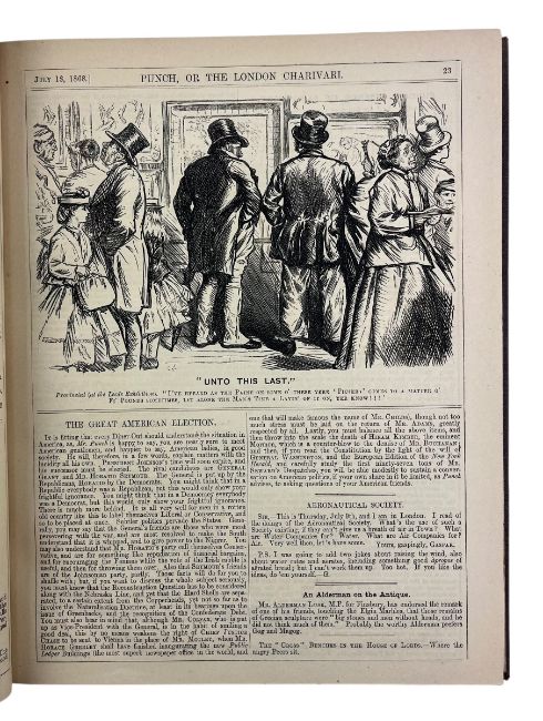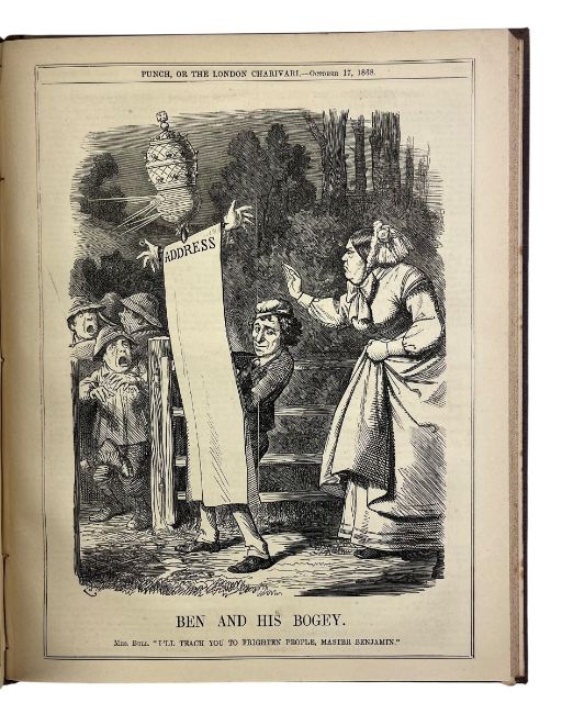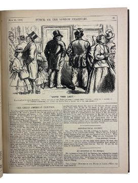 Punch, or The London Charivari Magazine. An extensive collection of approximately 216 Punch volumes, dated from 1841 to 1958. London: Published at The Office. Comprised of c.216 volumes bound over 176. An impressive collection of this popular satirical periodical, published between 1841 and 1992. Richly illustrated throughout, with many volumes from the publication's prime years of influence during the 1840s and 1850s. Largely bound in cloth, some of which is the publisher's, while other volumes are smartly rebound in red cloth or half calf. (176)