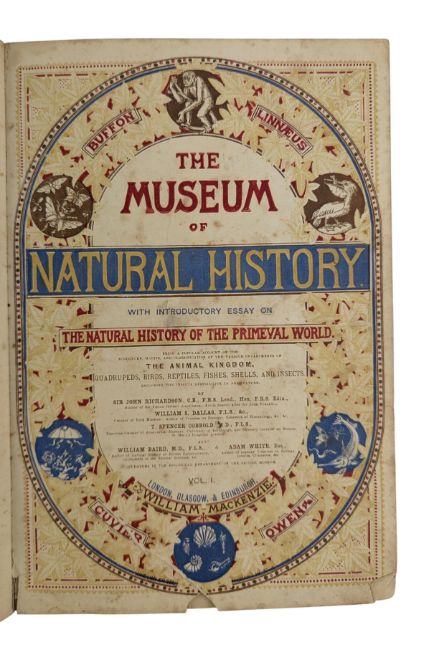 The Museum of Natural History. With Introductory Essay on The Natural History of the Primeval World. Being a Popular Account of the Structure, Habits, and Classification of the Various Departments of The Animal Kingdom. By Sir John Richardson, William S. Dallas, T. Spencer Cobbold, William Baird and Adam White. London, Glasgow, & Edinburgh: William Mackenzie. Richly illustrated throughout with plates and vignettes, some of which have been hand coloured. Bound in a very smart contemporary half calf with cloth boards. (2)