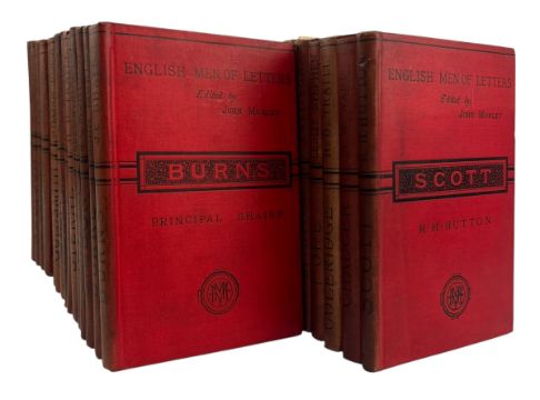Morley, John. 1880-87 English Men of Letters. London: Macmillan & Co. A collection of thirty-six volumes from the English Men of Letters series, exploring the works of famous authors including Charles Dickens, Alexander Pope, John Milton, and others. Edited by John Morley. Bound in the publisher's red cloth. With the stamp of Eaton Club and Reading Room. (36)