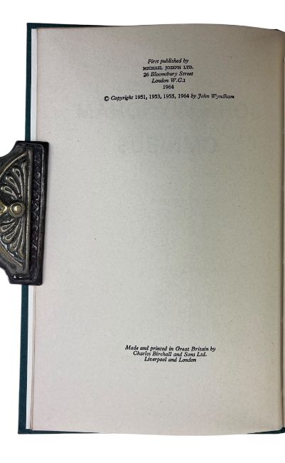 Wyndham, John. 1964 Omnibus: The Day of the Triffids, The Kraken Wakes & The Chrysalids. London: Michael Joseph. First omnibus edition. A trio of John Wyndham's popular novels. In an exceptionally bright example of the publisher's original dust wrapper. (1)