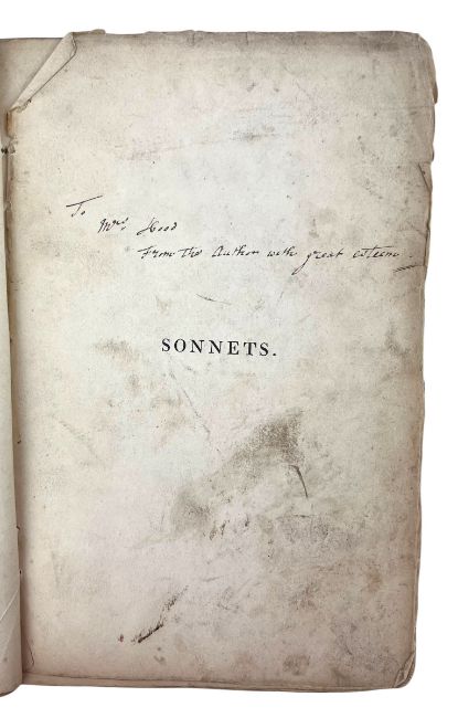 Bound in the publisher's paper wraps, all items held in an envelope. Lacking outer wraps to the Memoir of Robert Bloomfield, with edge wear and a few chips, as well as age toning to leaves. Internally, firmly bound to Memoir. Sonnets is bound in limp calf, with cover detached and endpapers starting. Half title retained to Sonnets, with handling marks scattered throughout. First few pages of Sonnets are strained, although remaining binding is generally firm. Envelope containing photographs is sealed.