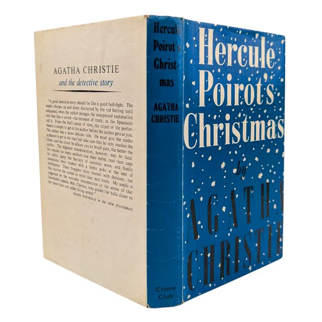 Christie, Agatha. c1954 Hercule Poirot's Christmas. London: Collins Crime Club. With a very scarce blue variant of the dust wrapper, which remains unclipped. A Crime Club edition of one of Agatha Christie's most sought-after titles. Lacking the title page, dated through the publisher's advertisements to the rear. (1)