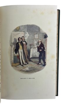 Bound in the publisher's green cloth. Externally, very good, with light shelf wear to the extremities and the odd mark. Damp stain to the front board of Dombey & Son II. Internally, generally firmly bound. Pages are generally bright with scattered spotting throughout.