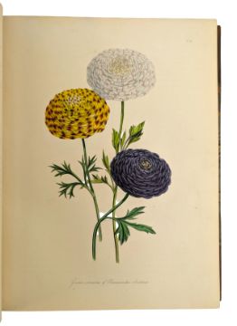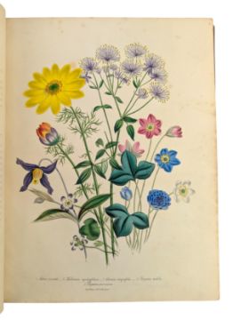 Loudon (Mrs Jane). 1843 The Ladies' Flower-Garden of Ornamental Perennials. Volume I of two volumes. London: William Smith, 113, Fleet Street. First edition. Illustrated with forty-five original hand-coloured lithograph plates. An excellent copy of the first edition of this illustrated work. Bound by Wareing Webb, Liverpool, in half morocco with marbled paper-covered boards. (1)